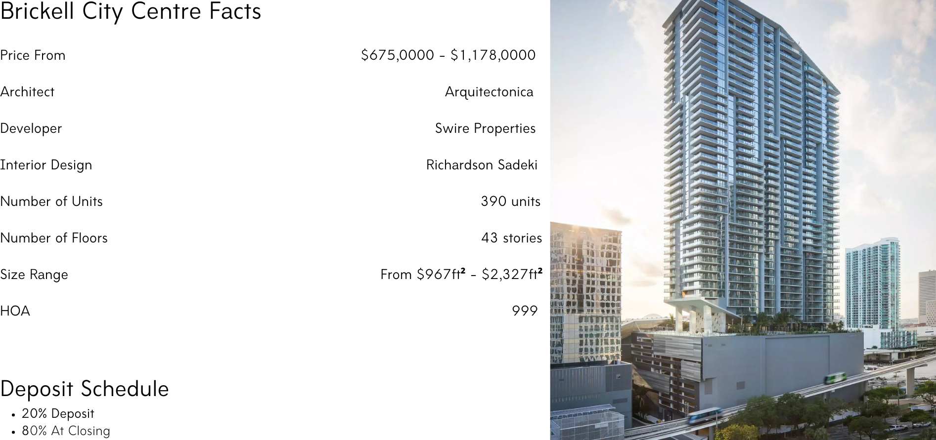 A luxury residential tower in the heart of Miami, Rise Brickell City Centre features finished luxury residences with city-view terraces and a nearly one-acre amenity deck. Focused on sophisticated details and understated style, this is an address to be envied, the go-to destination for the discerning buyer.