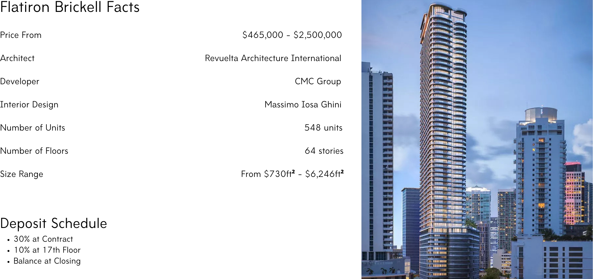 Brickell Flatiron’s new luxury condos are located in the heart of Downtown Miami. Brickell Flatiron is ideally situated within walking distance of Mary Brickell Village and Brickell City Centre—offering residents unparalleled access to a wide array of fashionable conveniences—with picturesque sidewalk cafés, fine dining, shopping, markets, outdoor and cultural activities along the way.